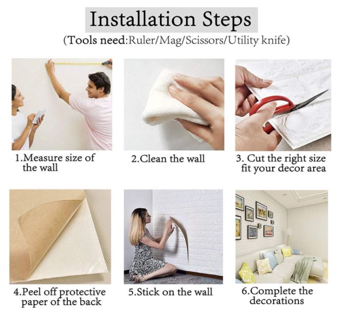 For more installation details view our Installation Guidation of 3D Peel and Stick Wall Tiles.