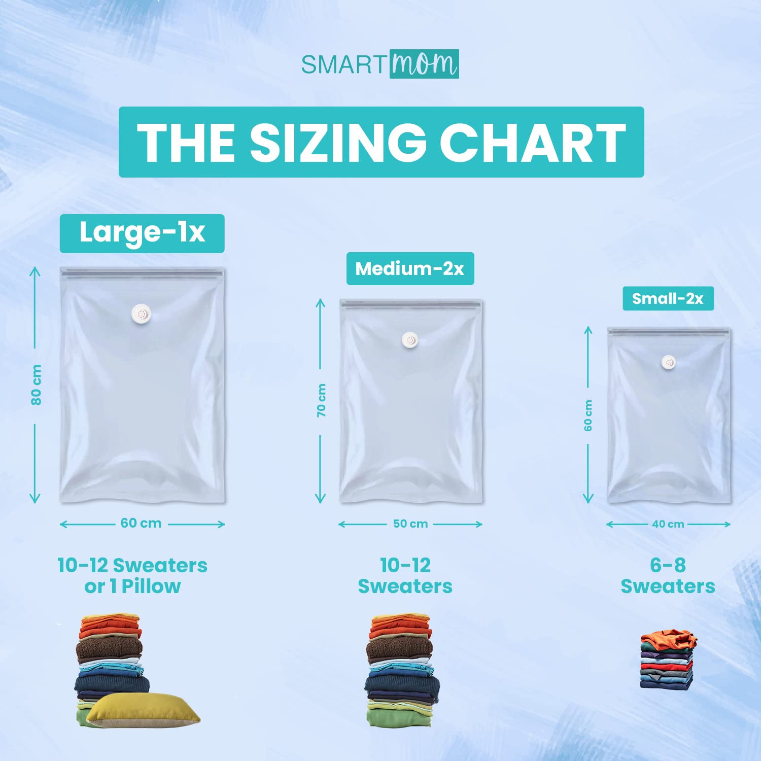 - PERFECT CHOICE TO STORE ITEMS: The vacuum storage bags are perfect choice to store bulky or out-of-season items. When you take these items out from our vacuum storage bags, they are still clean and fresh. It comes with 5 bags, small(2 pieces), medium(2 pieces), large(1 piece). Small - 50 cm x 70 cm. Medium - 60 cm x 80 cm. Large - 70 cm x 100 cm.